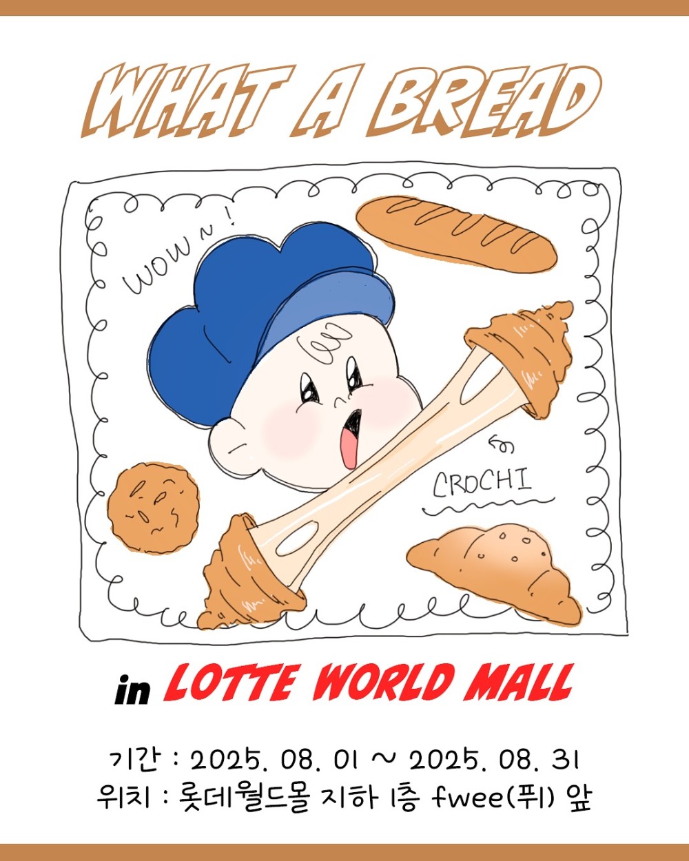 🥐 WAB TRIP: 왓어브레드, 잠실 월드몰 재착륙!📍 장소 : 잠실 롯데월드몰 B1 H&M 앞📅 기간 : 8월 1일(금) ~ 8월 31일(일)🕰 운영시간 : 백화점 영업시간 동일첫 팝업에서 받은 뜨거운 사랑에 힘입어,왓어브레드가 잠실 월드몰로 돌아왔습니다! 🩷달콤한 한 달간의 여행,왓어브레드와 함께 소중한 사람에게 특별한 순간을 전하세요. ✨